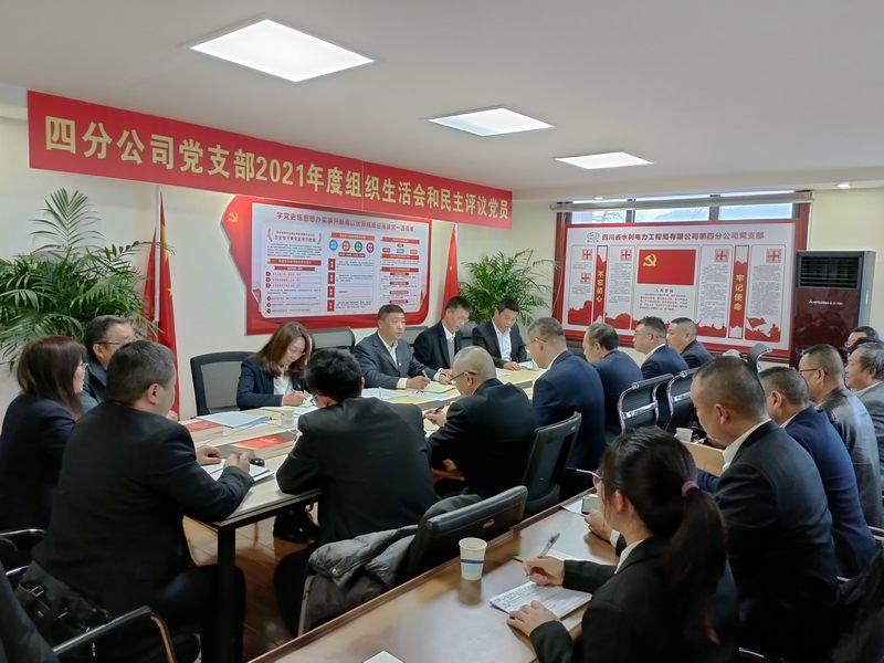 2022年2月22日,四分公司黨支部在都江堰水利大廈5樓黨員活動室組織召開2021年度組織生活會和民主評議黨員。會議由四分公司黨支部書記孫紹陽主持,四分公司全體黨員參加會議,四分公司非黨員班子成員列席會議。