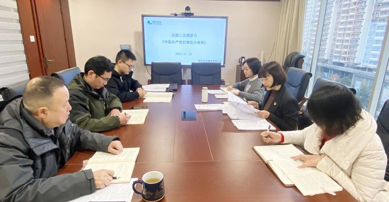 2024年1月23日,總部二支部在成都總部會議室召開黨員大會,集中學習新修訂的《中國共產黨紀律處分條例》(以下簡稱《條例》),公司黨委委員、紀委書記陳盛華以普通黨員身份參加,會議由總部二支部副書記唐琴主持。