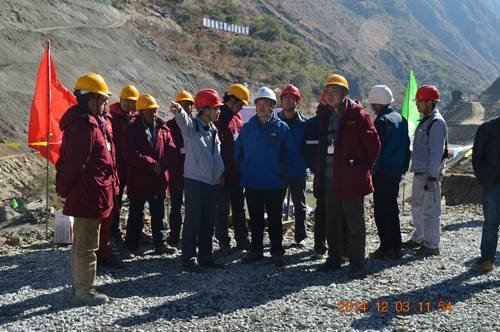 2014年12月3日上午,水洛河公司總經理蒲春雨、副總經理周有志、工程部副主任汪浩、固滴建管部主任晏國順、監(jiān)理部常務副總監(jiān)張鳴生和設計等一行蒞臨固滴電站首部樞紐工程施工現(xiàn)場檢查指導工作,察看了由我局承建施工的固滴電站首部樞紐工程。局水洛河固滴水電站首部樞紐項目部常務副經理毛偉、副總工鄭中華、生產副經理張方清、安全副經理袁友軍及項目部門負責同志參加陪同。